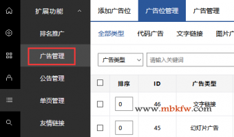 显示一个文字链接,一个广告位只显示最新的一个广告。