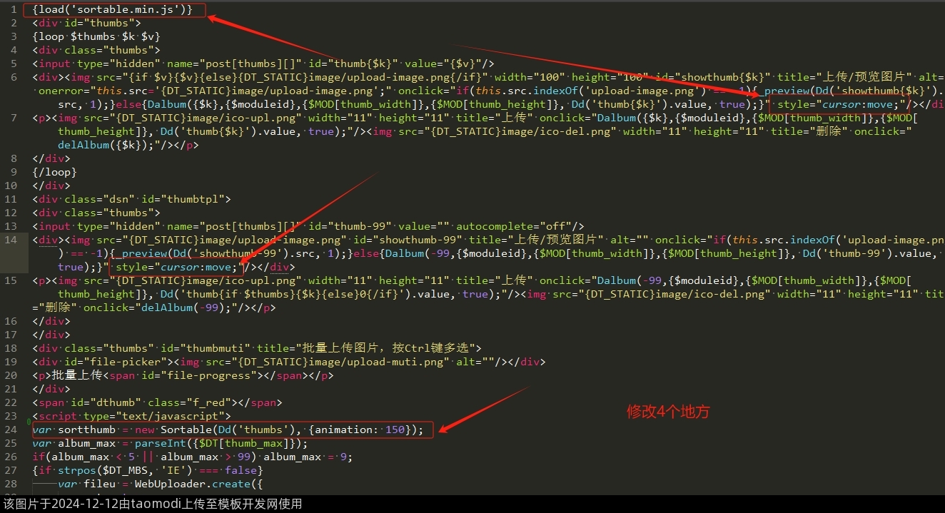 {load('sortable.min.js')}3、继续找 上传/预览图片 后面加上 拖动排序