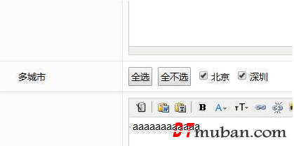 $html .= ' <input type="button" value="全选" id="all"/> <input type="button" value="全不选" id="resove"/> <script type="text/javascript">$("#all").click(function(){ $(".chengshi:checkbox").prop("checked",true); }); $("#resove").click(function(){ $(".chengshi:checkbox").prop("checked",false); }) </script>';