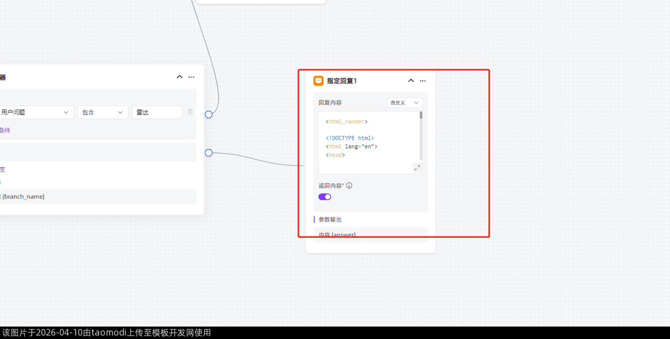 创建工作流,直接在指定回复当中写这个标签即可。