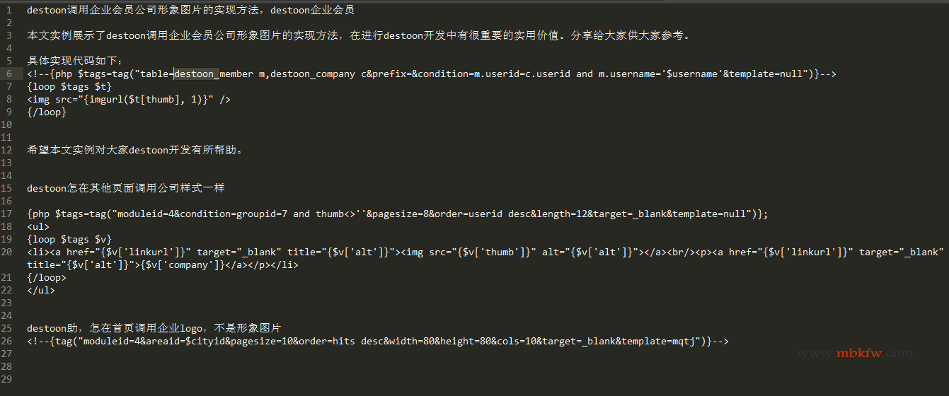 本文标题: DESTOON调用企业会员公司形象图片的实现方法,DESTOON企业会员,多表查询