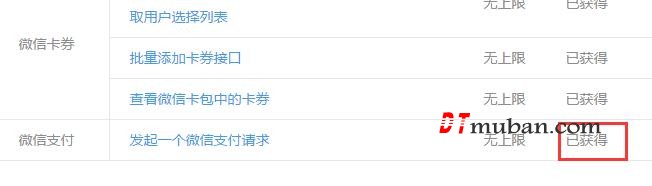 进入微信公众平台,点击左下角接口权限,检查微信支付接口权限是否已经获得。