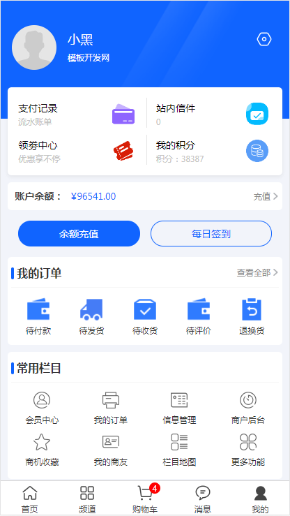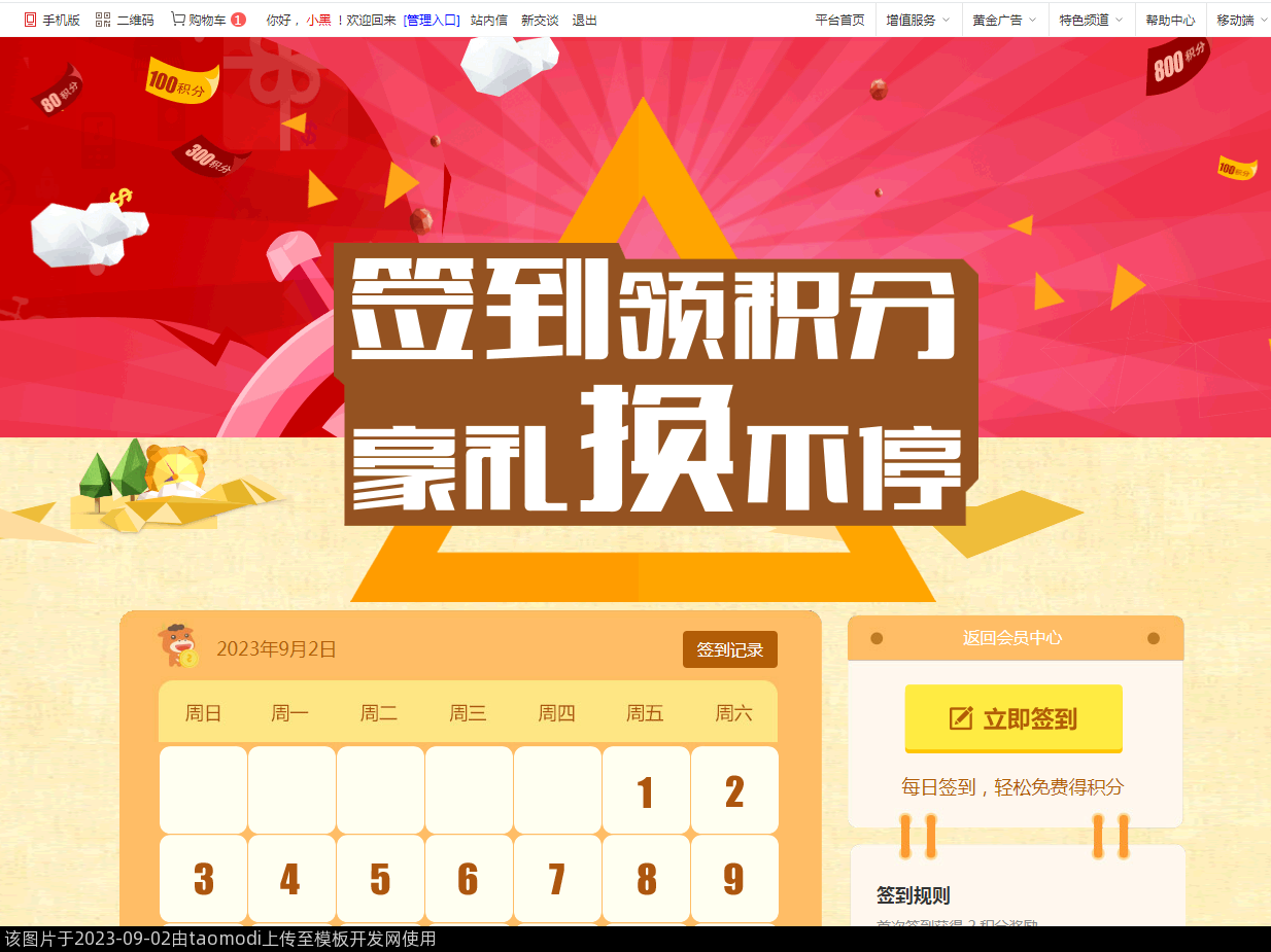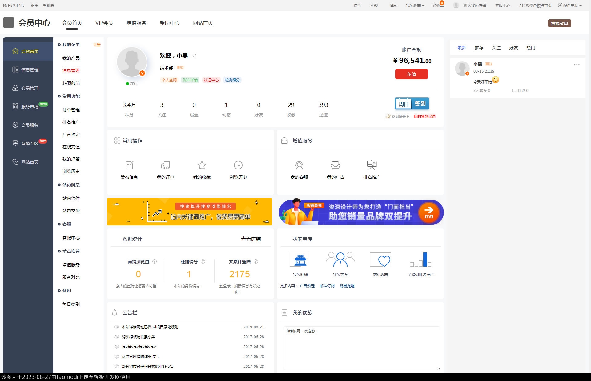 2、会员中心新增:签到功能,我的菜单功能,更新了各大功能的详细归属。