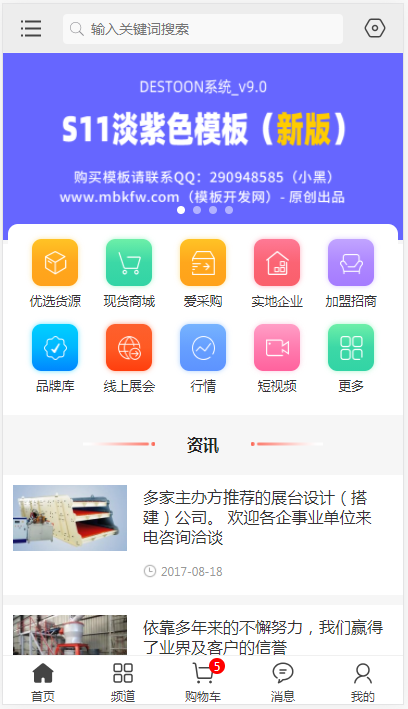 原创出品:S11淡紫色平台模板-DESTOON9.0程序框架模板