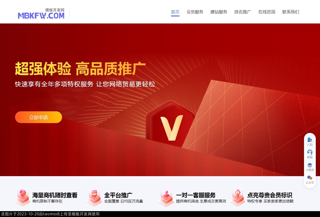 模板开发网是主要承接destoon框架的网站模板定制,开发、模板出售、网站建设等业务,官方网址:www.mbkfw.com。
